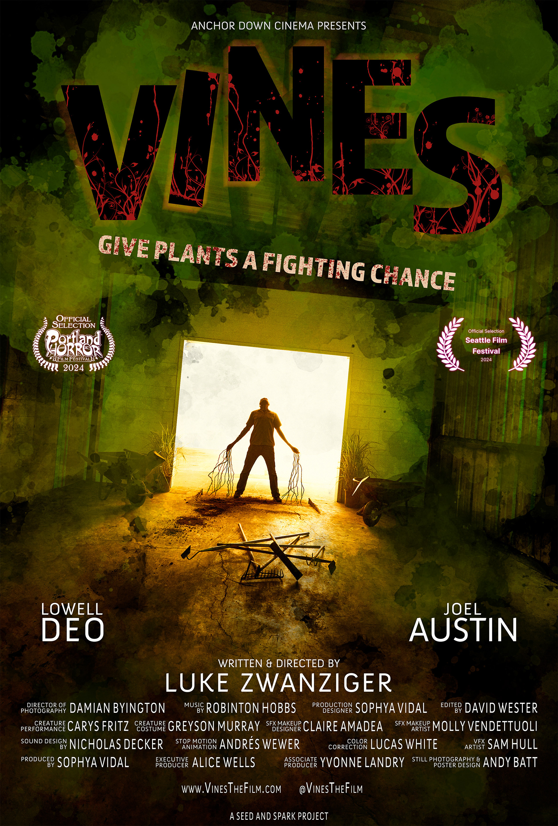 The film stars Emmy award winner Lowell Deo (GRIMM [NBC], Z Nation[Syfy]) as the mad botanist Dr. Harold Madsen and Joel Austin as Rowan, a hapless gardener who is experimented upon. The actors won BEST ACTING DUO for Vines at the Seattle Film Festival 2024.